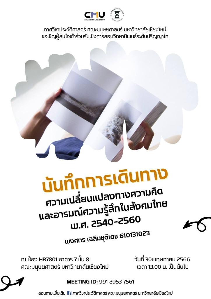 เชิญชวนผู้สนใจเข้าร่วมรับฟังการสอบวิทยานิพนธ์นักศึกษาระดับปริญญาโท สาขาวิชาประวัติศาสตร์