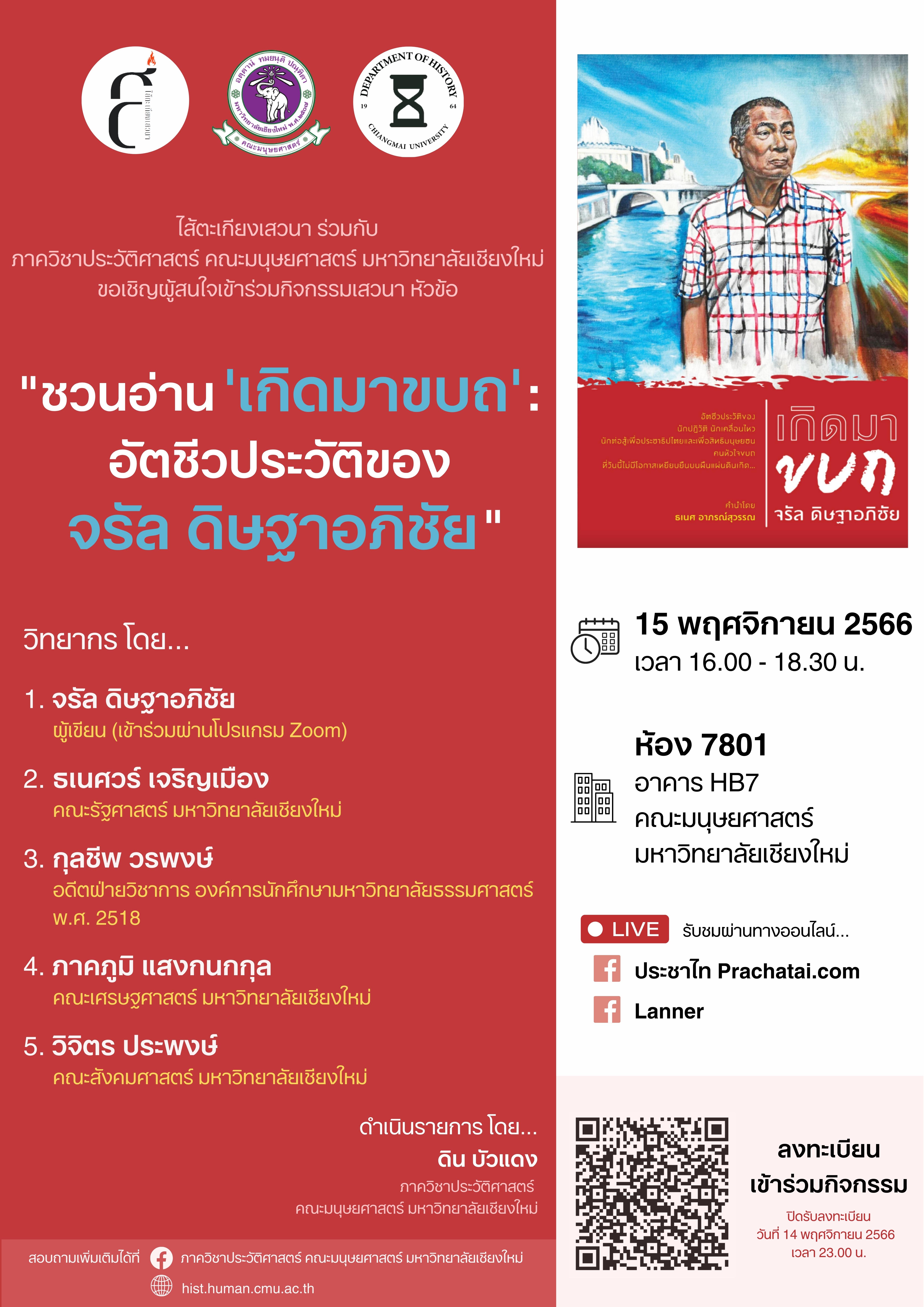 "ไส้ตะเกียงเสวนา" ร่วมกับภาควิชาประวัติศาสตร์ คณะมนุษยศาสตร์ มหาวิทยาลัยเชียงใหม่ ขอเชิญผู้สนใจเข้าร่วมกิจกรรมเปิดตัวหนังสือและเสวนาในหัวข้อ