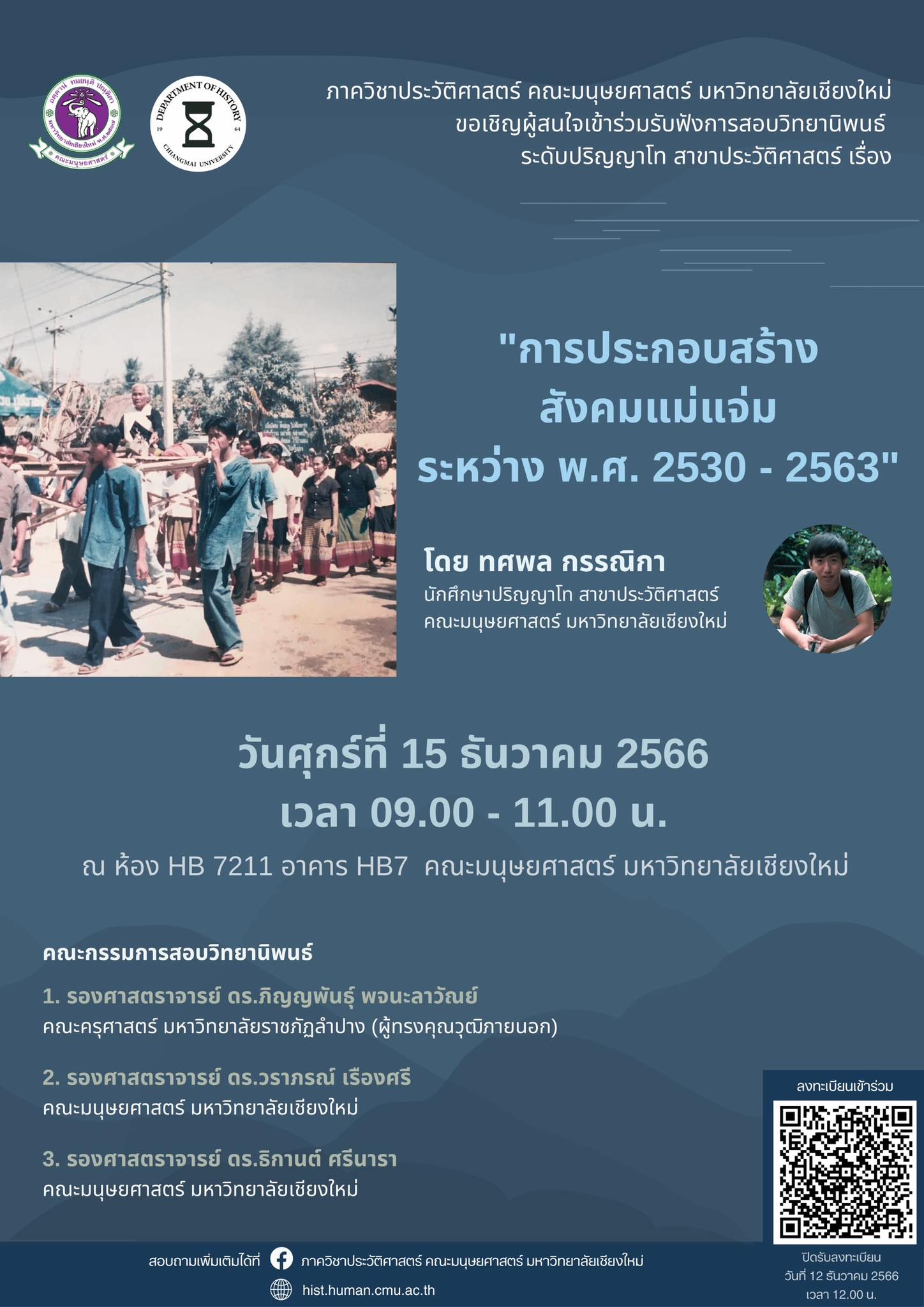 ขอเชิญผู้สนใจเข้าร่วมรับฟังการสอบวิทยานิพนธ์ ระดับปริญญาโท สาขาประวัติศาสตร์ เรื่อง