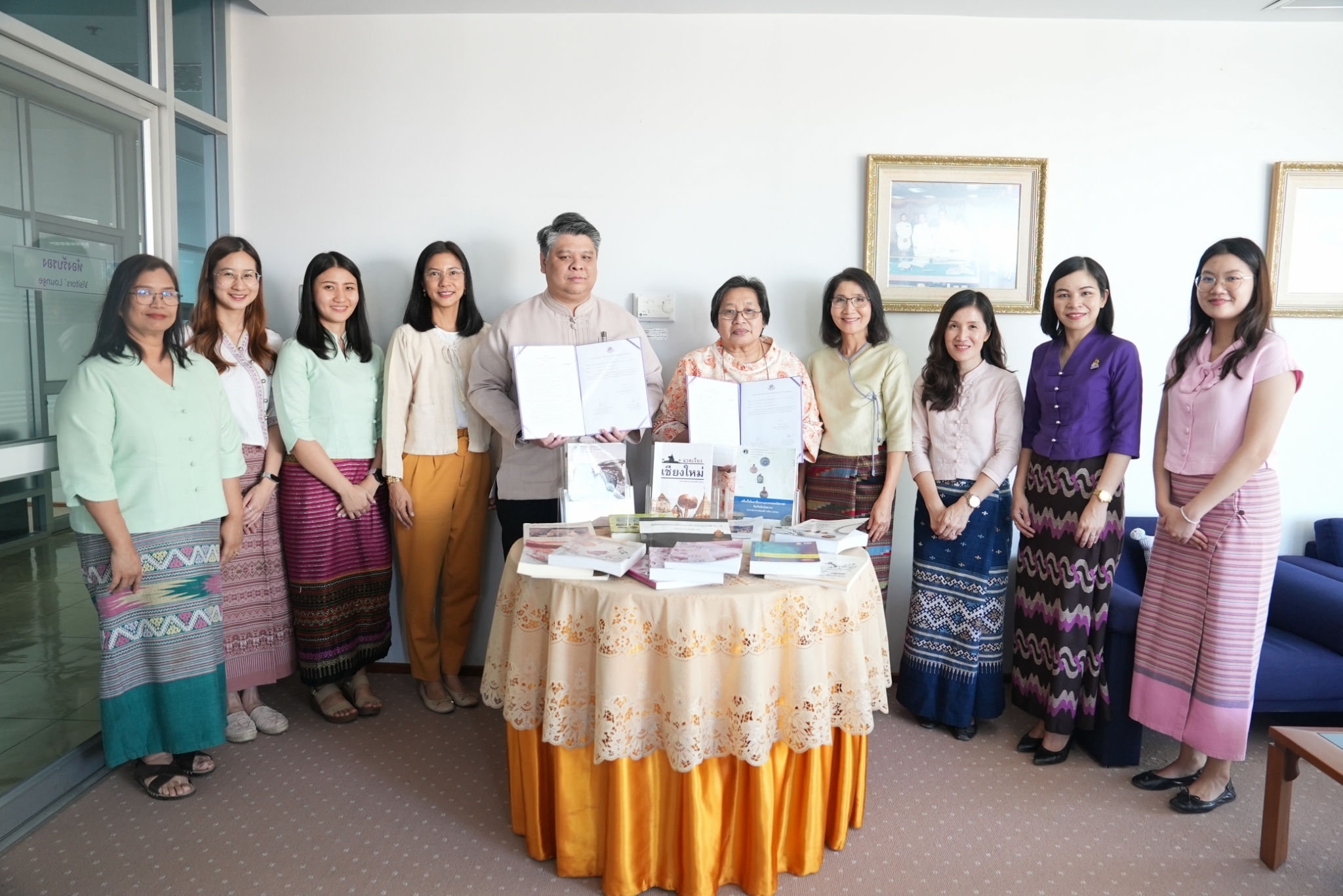 นายปราชญ์ สงวนศักดิ์ ผู้อำนวยการสำนักหอสมุด คณะผู้บริหาร และบุคลากรสำนักหอสมุด จัดพิธีการลงนามในแบบยินยอมเผยแพร่ผลงานของศาสตราจารย์เกียรติคุณอุษณีย์ ธงไชย อดีตอาจารย์ประจำภาควิชาประวัติศาสตร์ คณะมนุษยศาสตร์ มหาวิทยาลัยเชียงใหม่ โดยมี ศาสตราจารย์เกียรติคุณอุษณีย์ ธงไชย อดีตอาจารย์ประจำภาควิชาประวัติศาสตร์ คณะมนุษยศาสตร์ ผู้ช่วยศาสตราจารย์ ดร.ธัญญารัตน์ อภิวงค์ หัวหน้าภาควิชาประวัติศาสตร์ คณะมนุษยศาสตร์ และผู้ช่วยศาสตราจารย์ ดร. วิลลา วิลัยทอง รองหัวหน้าภาควิชาประวัติศาสตร์ คณะมนุษยศาสตร์ มหาวิทยาลัยเชียงใหม่ เข้าร่วมการลงนาม ซึ่งเป็นผลงานที่มีคุณค่าต่อการศึกษา ค้นคว้า และวิจัยของนักศึกษา อาจารย์ นักวิจัยของมหาวิทยาลัยและผู้สนใจทั่วไป โดยจะได้รับการจัดเก็บและเผยแพร่ไว้ในรูปแบบเอกสารฉบับเต็มใน Personal Collections ใน sub-collection ชื่อ “Prof. Emeritus Usanee Thongchai” บน CMU Digital Collections ณ ห้องรับรองชั้น 5 สำนักหอสมุด เมื่อวันที่ 19 มกราคม พ.ศ. 2567