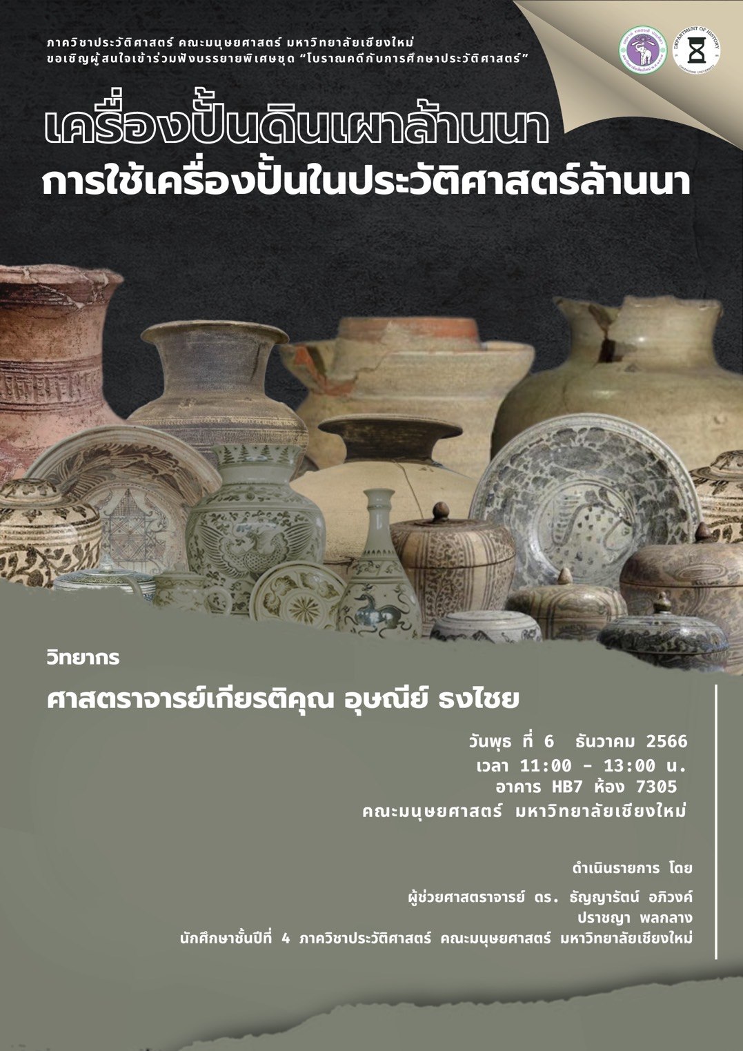 ภาควิชาประวัติศาสตร์จัดกิจกรรมบรรยายพิเศษชุด "โบราณคดีกับการศึกษาประวัติศาสตร์" หัวข้อเรื่อง "เครื่องปั้นดินเผาล้านนา การใช้เครื่องปั้นในประวัติศาสตร์ล้านนา"
