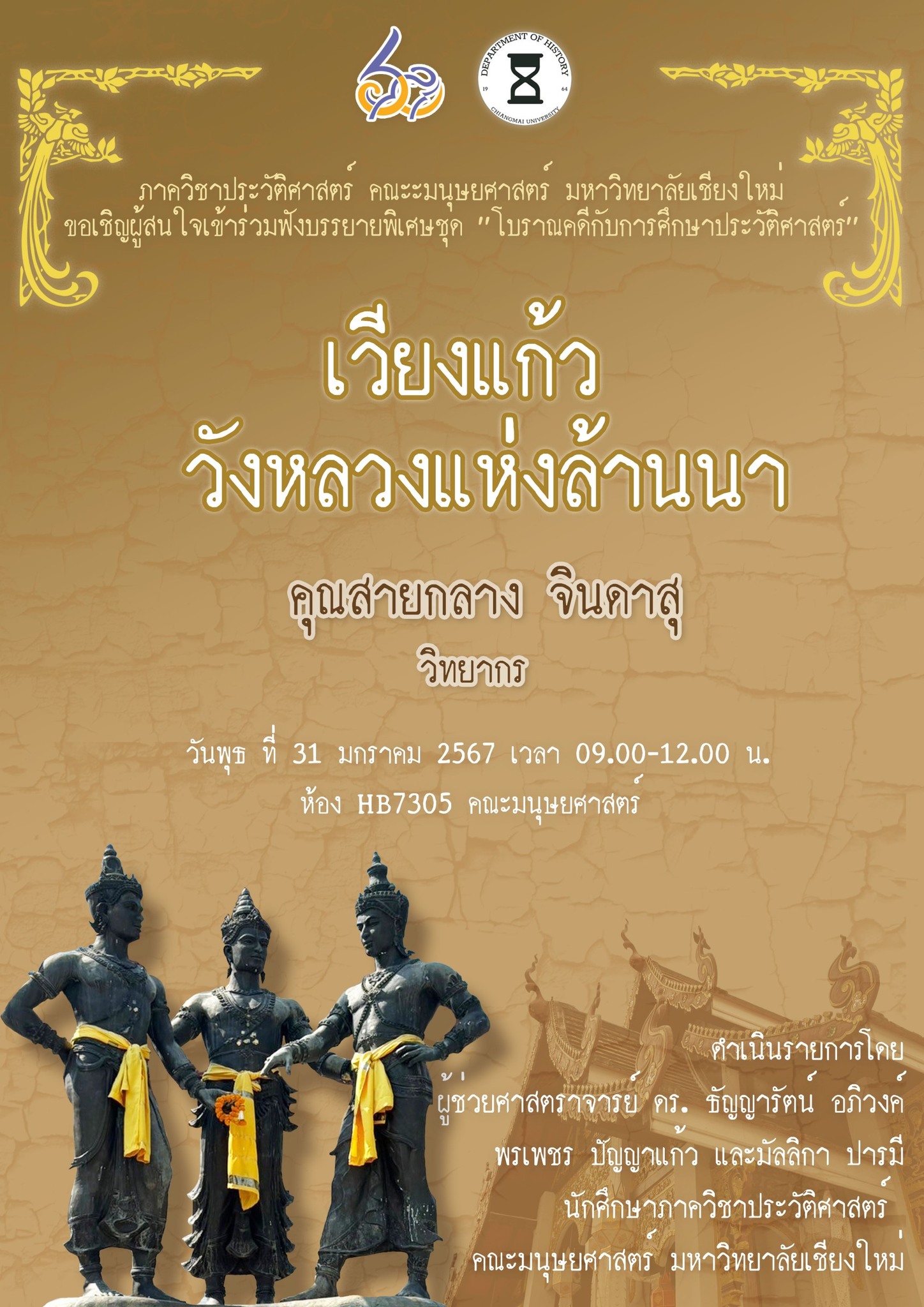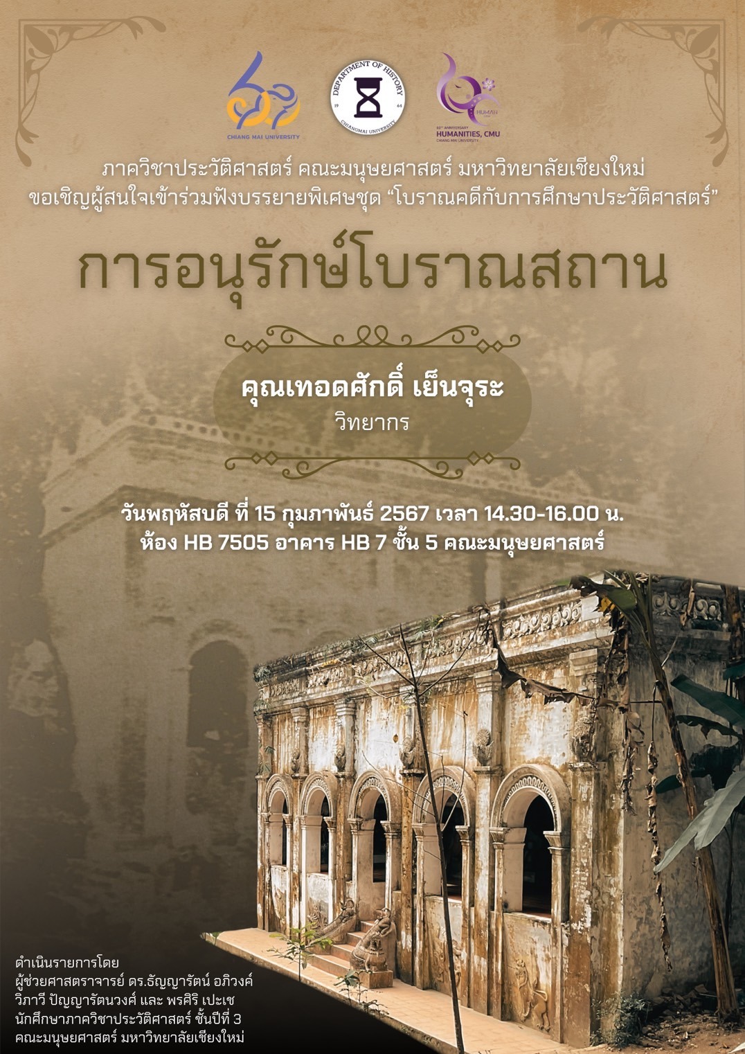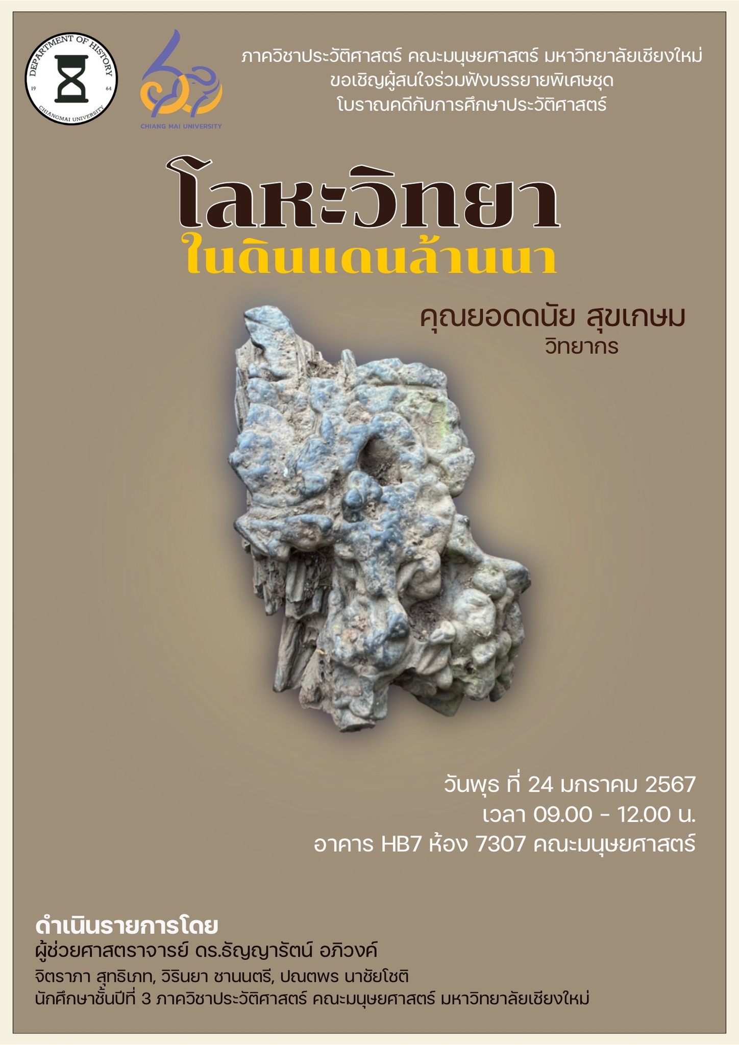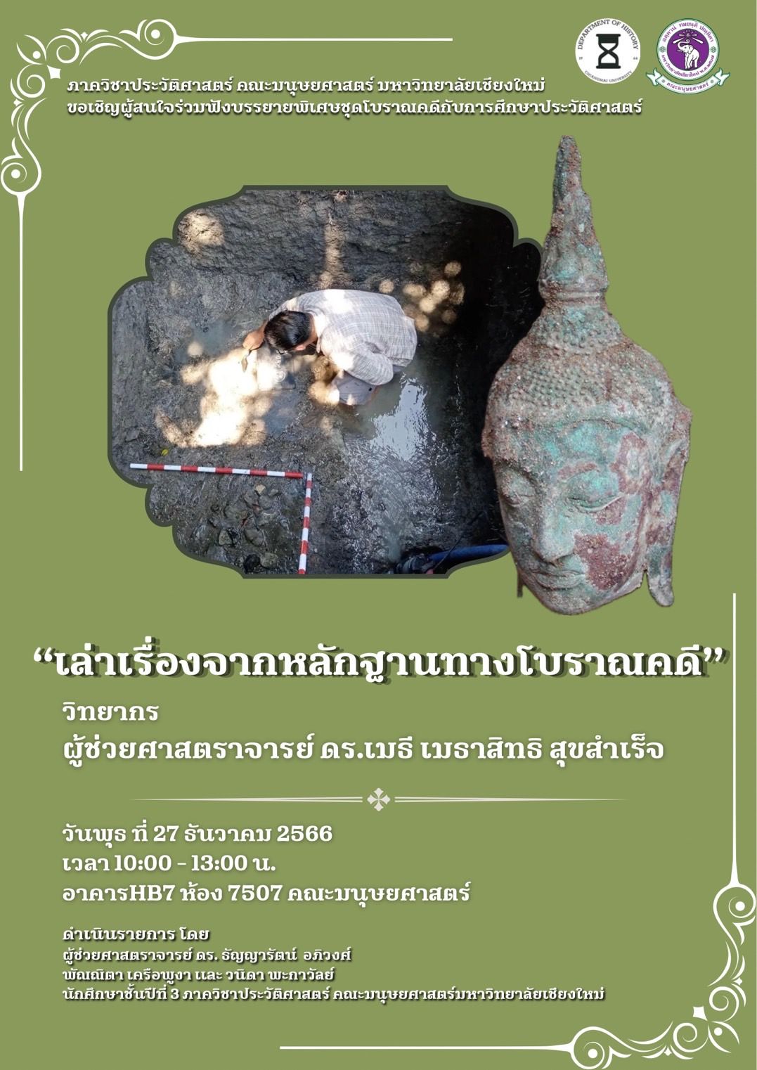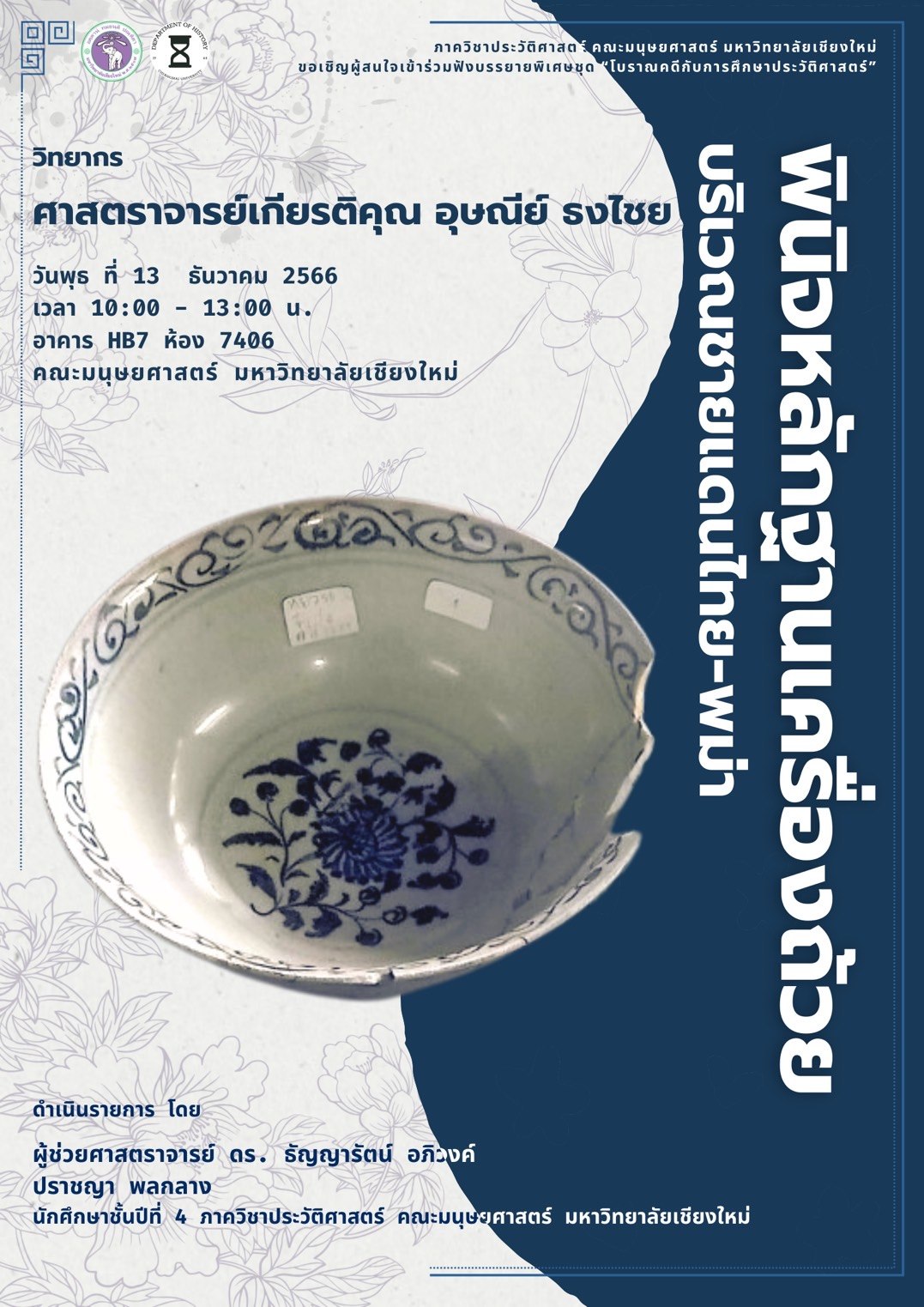 ภาควิชาประวัติศาสตร์ คณะมนุษยศาสตร์ มหาวิทยาลัยเชียงใหม่ ขอเชิญเข้าร่วมฟังบรรยายพิเศษชุด "โบราณคดีกับการศึกษาประวัติศาสตร์"